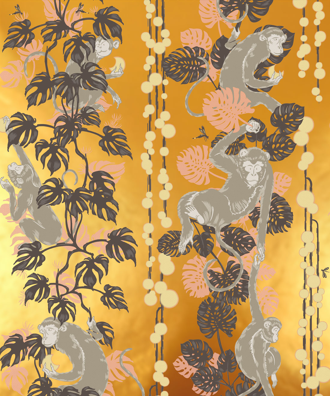 5 Monkeys Metallic Wallpaper