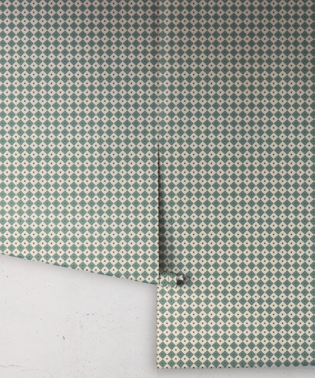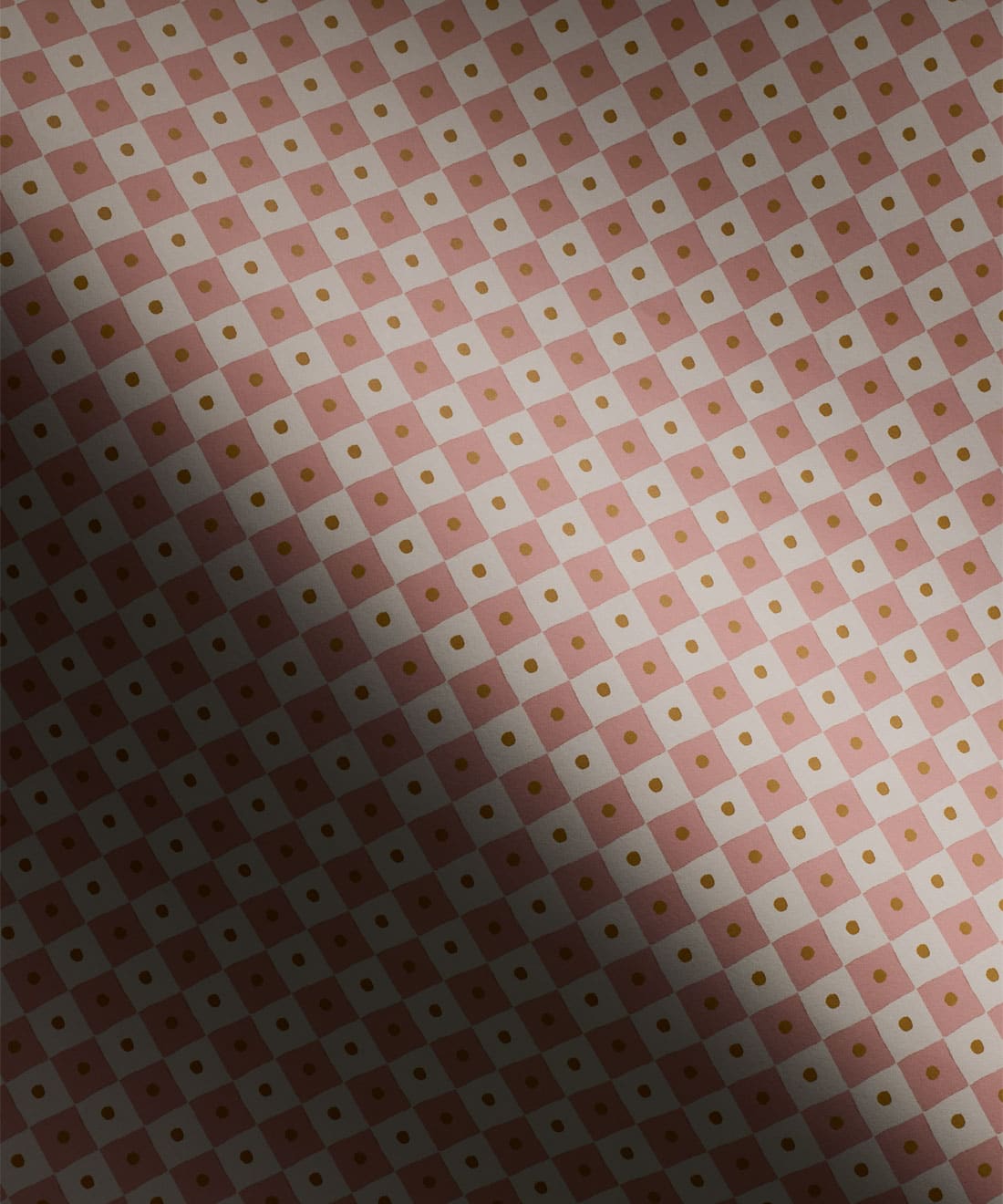 Das Schachbrettmuster ist eine Neuinterpretation eines zeitlosen Motivs mit einer verspielten scale und einer sanfteren Farbgebung. Das Rautenraster wird durch subtle Details unterstrichen, die für ein Gleichgewicht zwischen Ordnung und Charme sorgen.