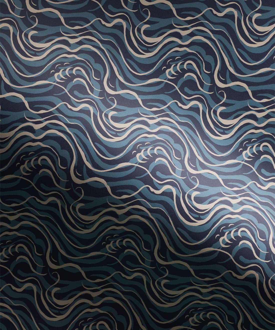 Edo ist eine Hommage an traditionelle japanische Kunstformen, deren zeitlose Motive mit modern Sensibilität neu interpretiert werden. Die sich wiederholenden Linien und Formen erinnern an Wellen, Schuppen und fließende Bewegungen und schaffen ein Gleichgewicht zwischen Struktur und Flüssigkeit.