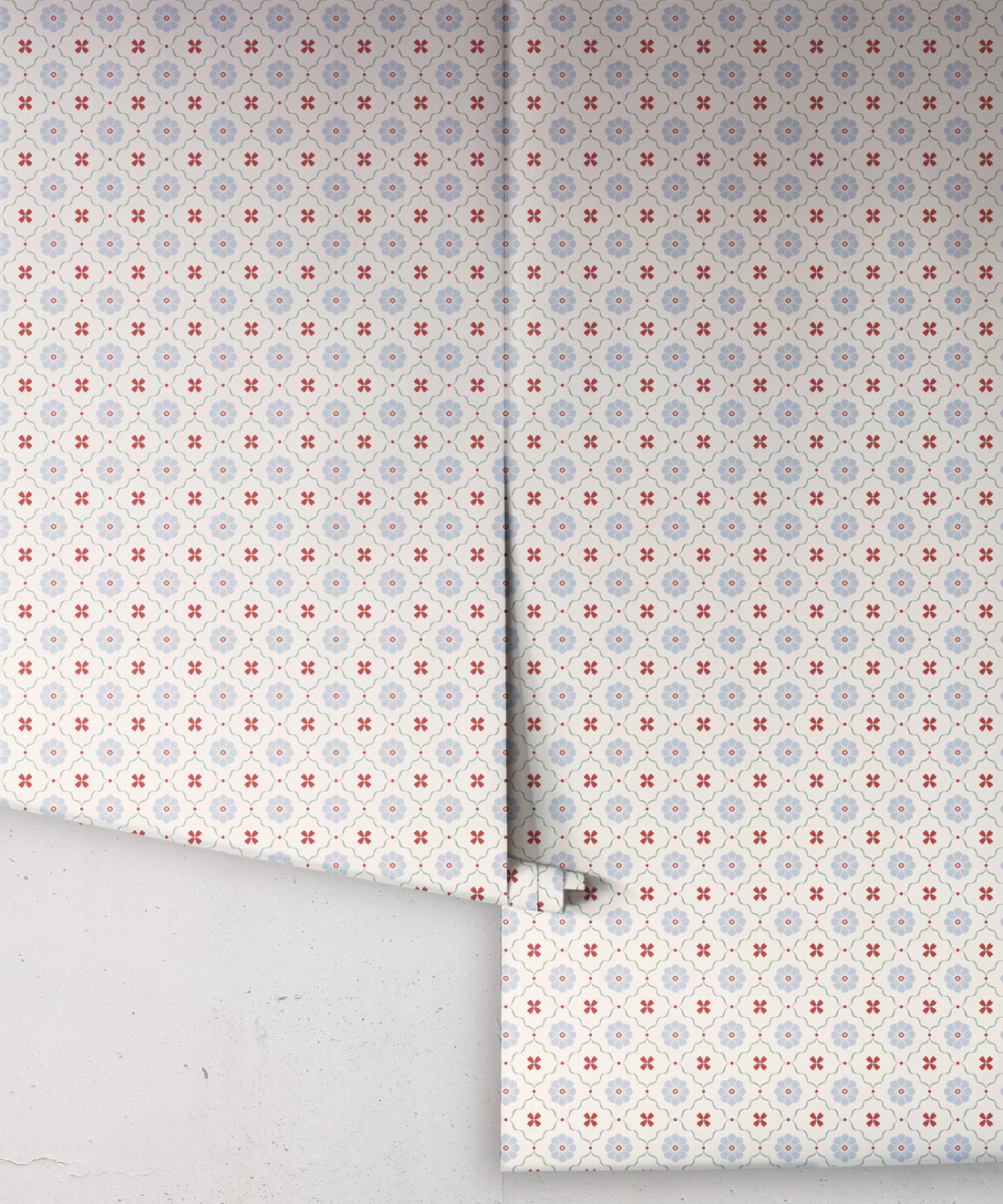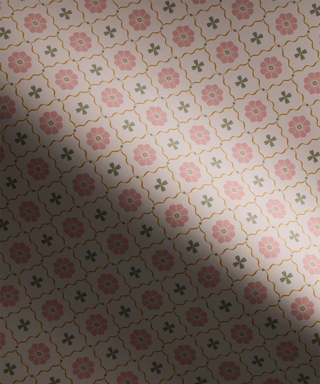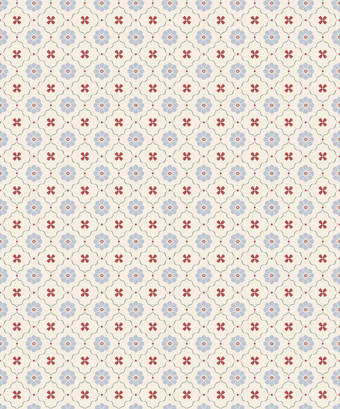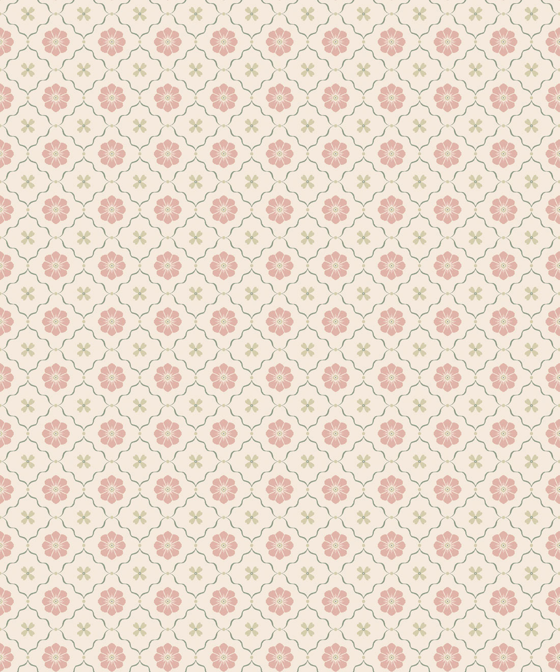 Die Tapete Esme vereint handgezeichnete Blüten in einem niedlichen, zeitlosen Rapport, der an alte Fliesen erinnert. Das süße und zugleich raffinierte Blumenmuster ist vielseitig und lässt sich wunderbar mit anderen Petite-Prints kombinieren.
