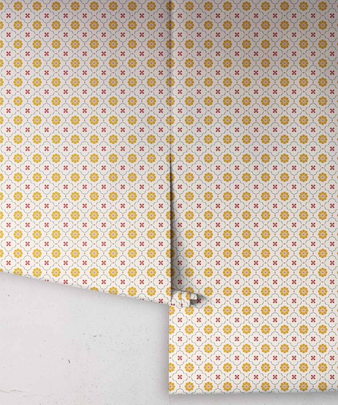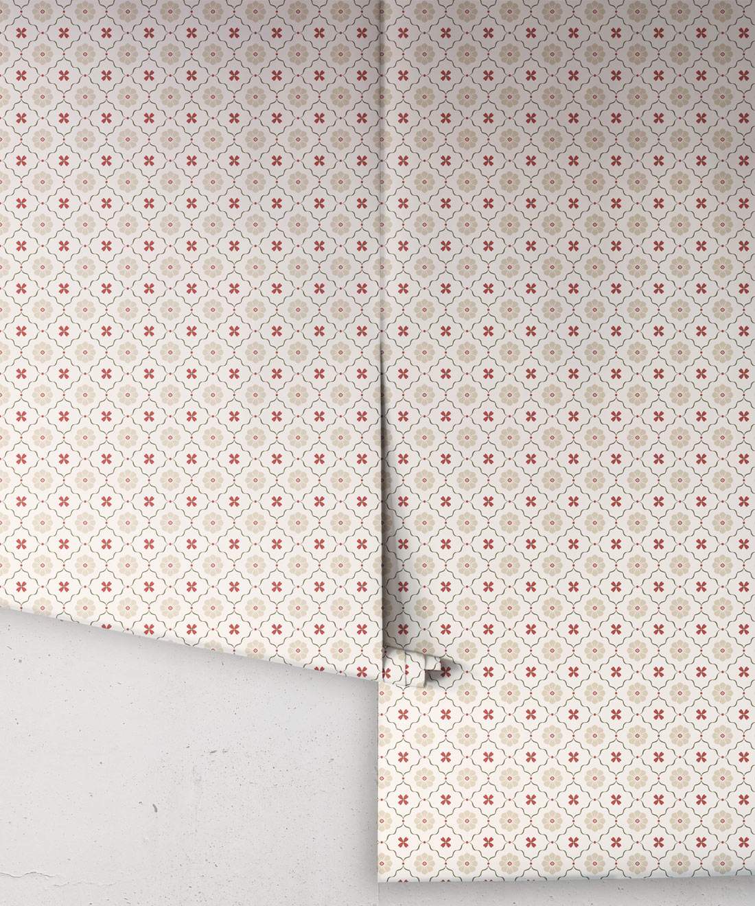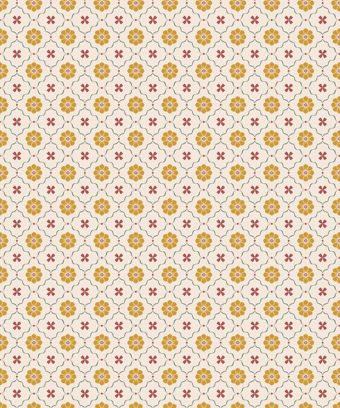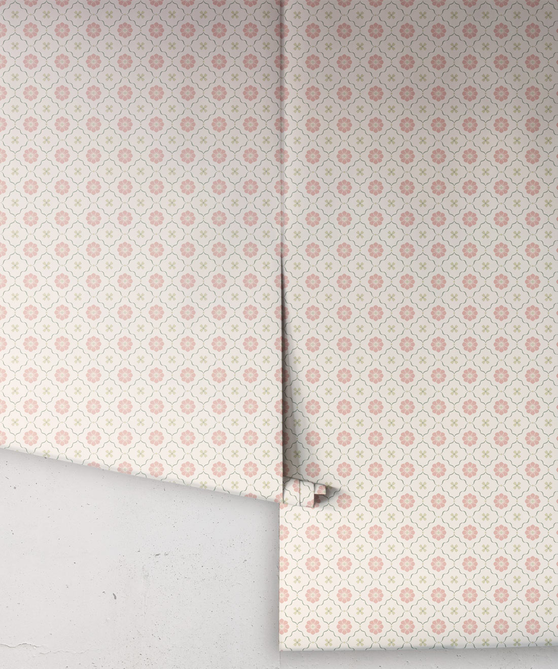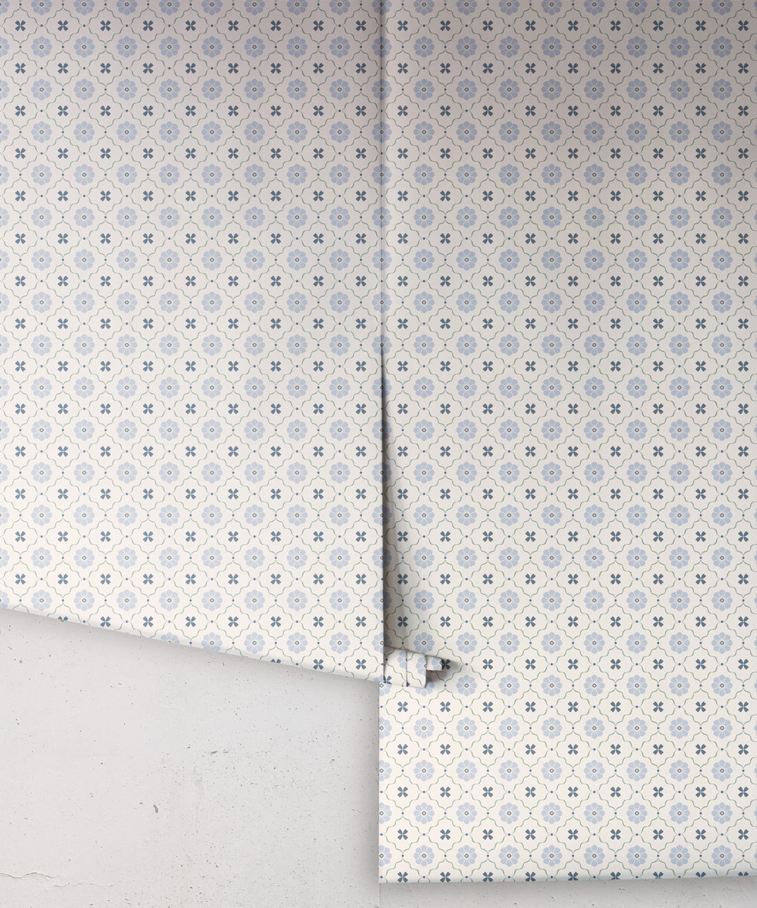 Die Tapete Esme vereint handgezeichnete Blüten in einem niedlichen, zeitlosen Rapport, der an alte Fliesen erinnert. Das süße und zugleich raffinierte Blumenmuster ist vielseitig und lässt sich wunderbar mit anderen Petite-Prints kombinieren.