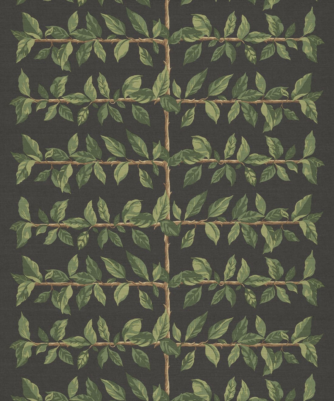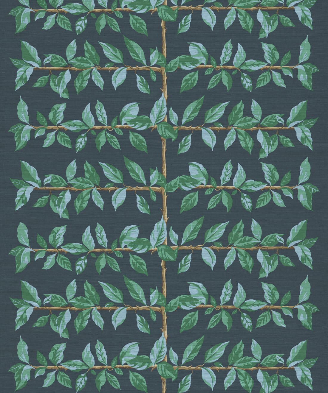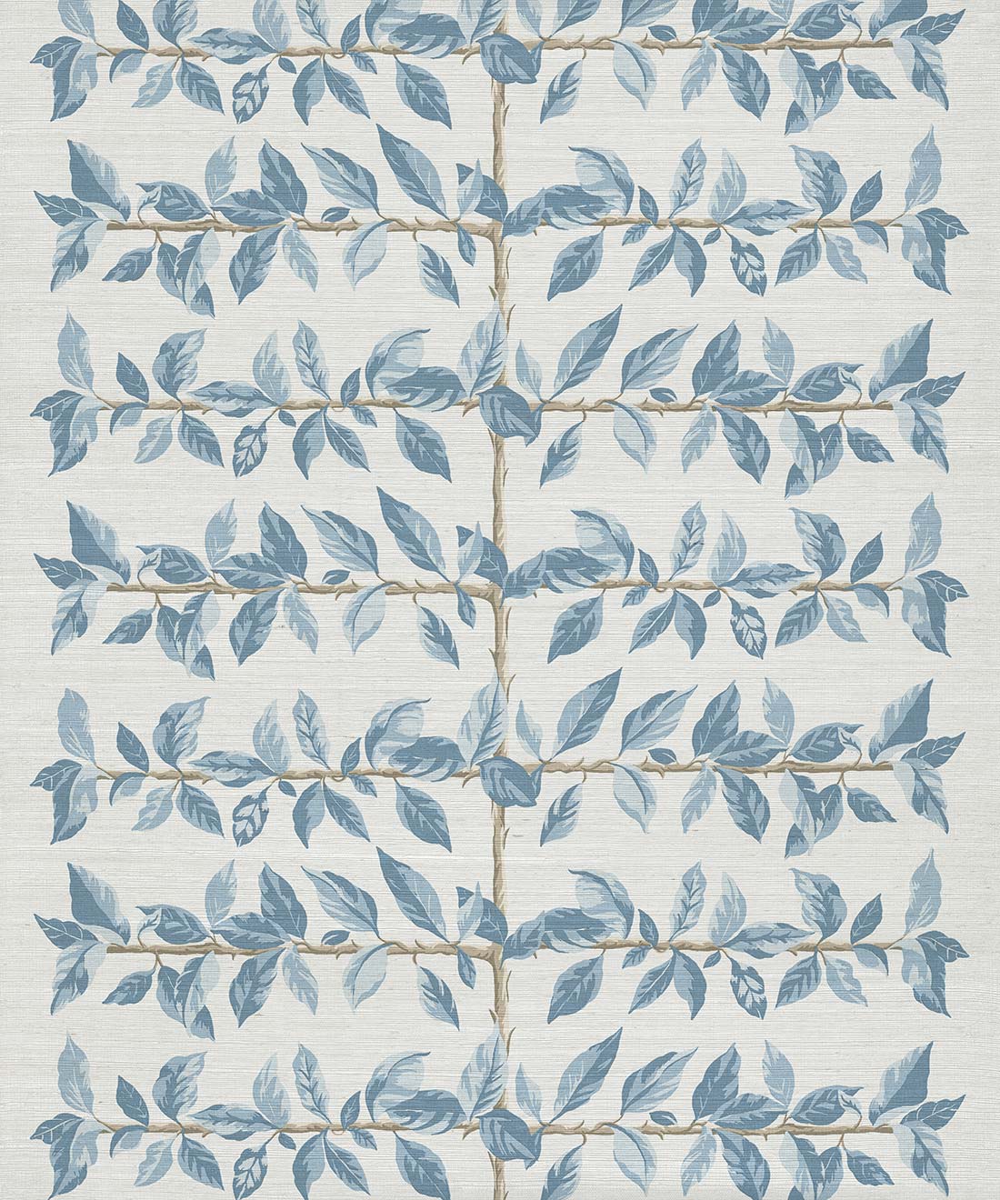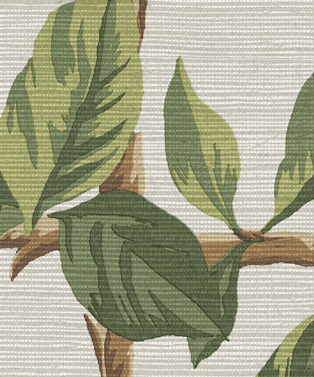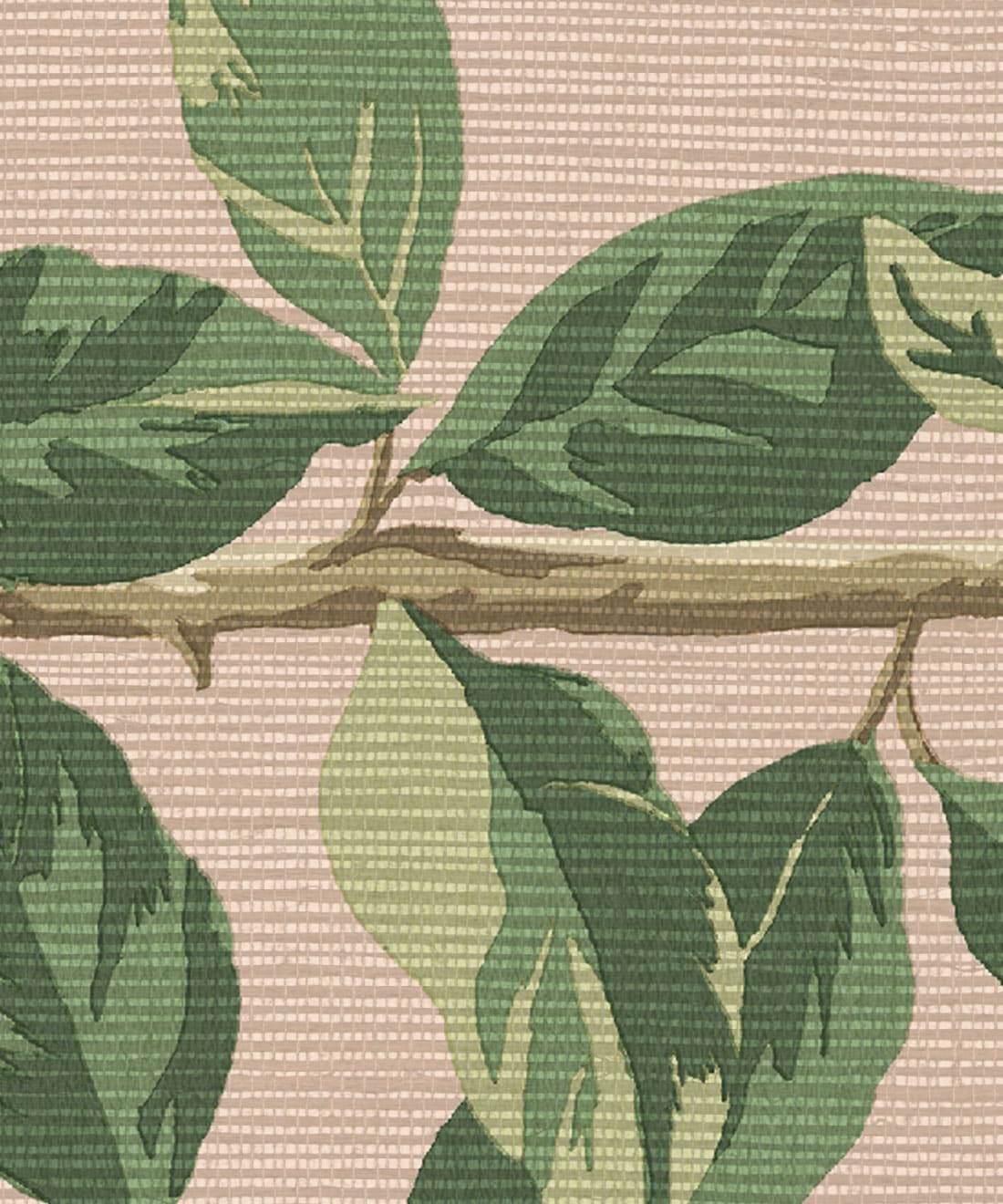 Die Tapete „Pergola Grasscloth“ ist eine scale Tapete scale , die von der rankenden greenery Gartenspalieren und Pergolen inspiriert ist. Blätter und Stiele erheben sich vertikal durch das Design und bilden ein Muster, das die Struktur von Gartenkonstruktionen widerspiegelt.
