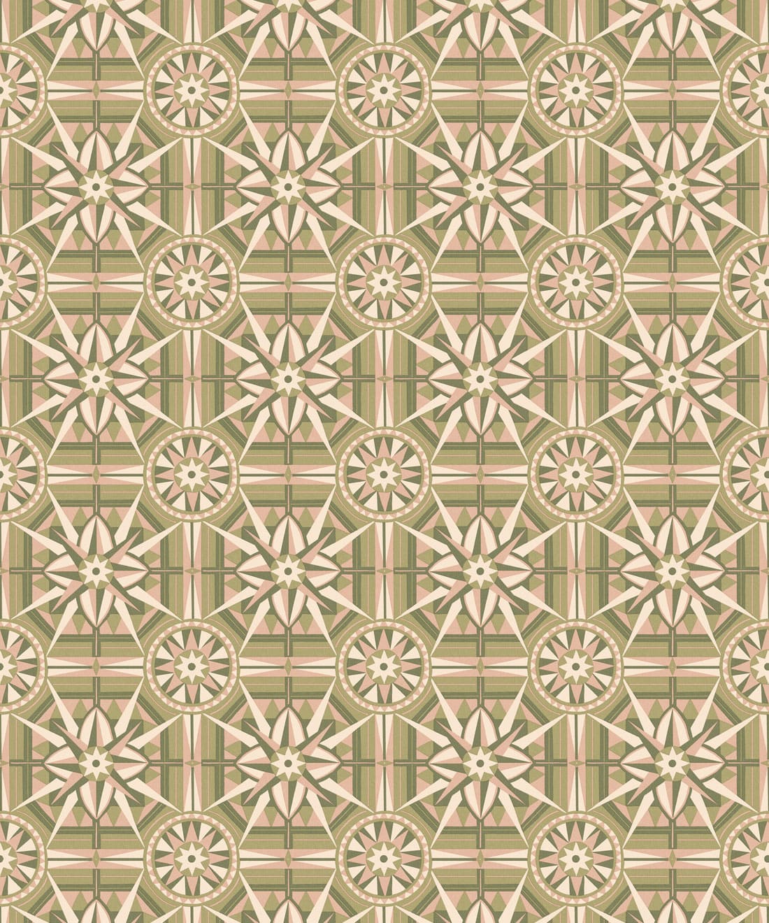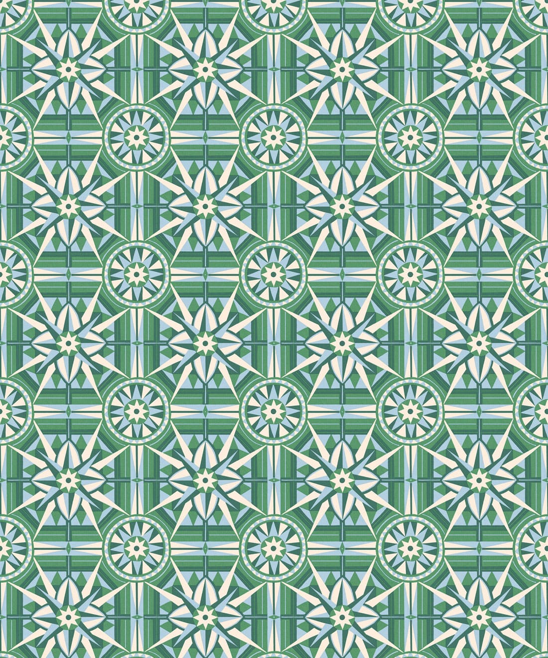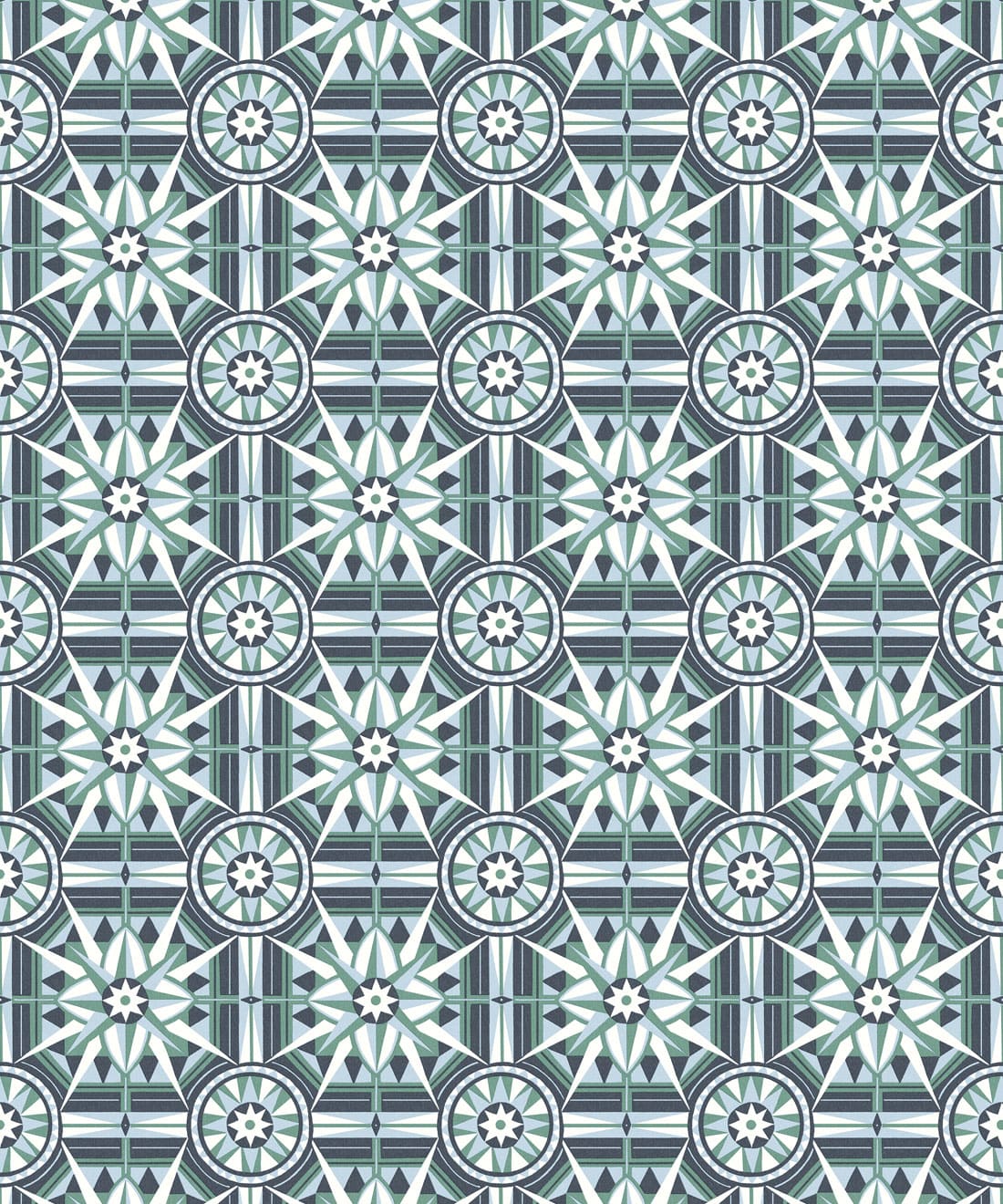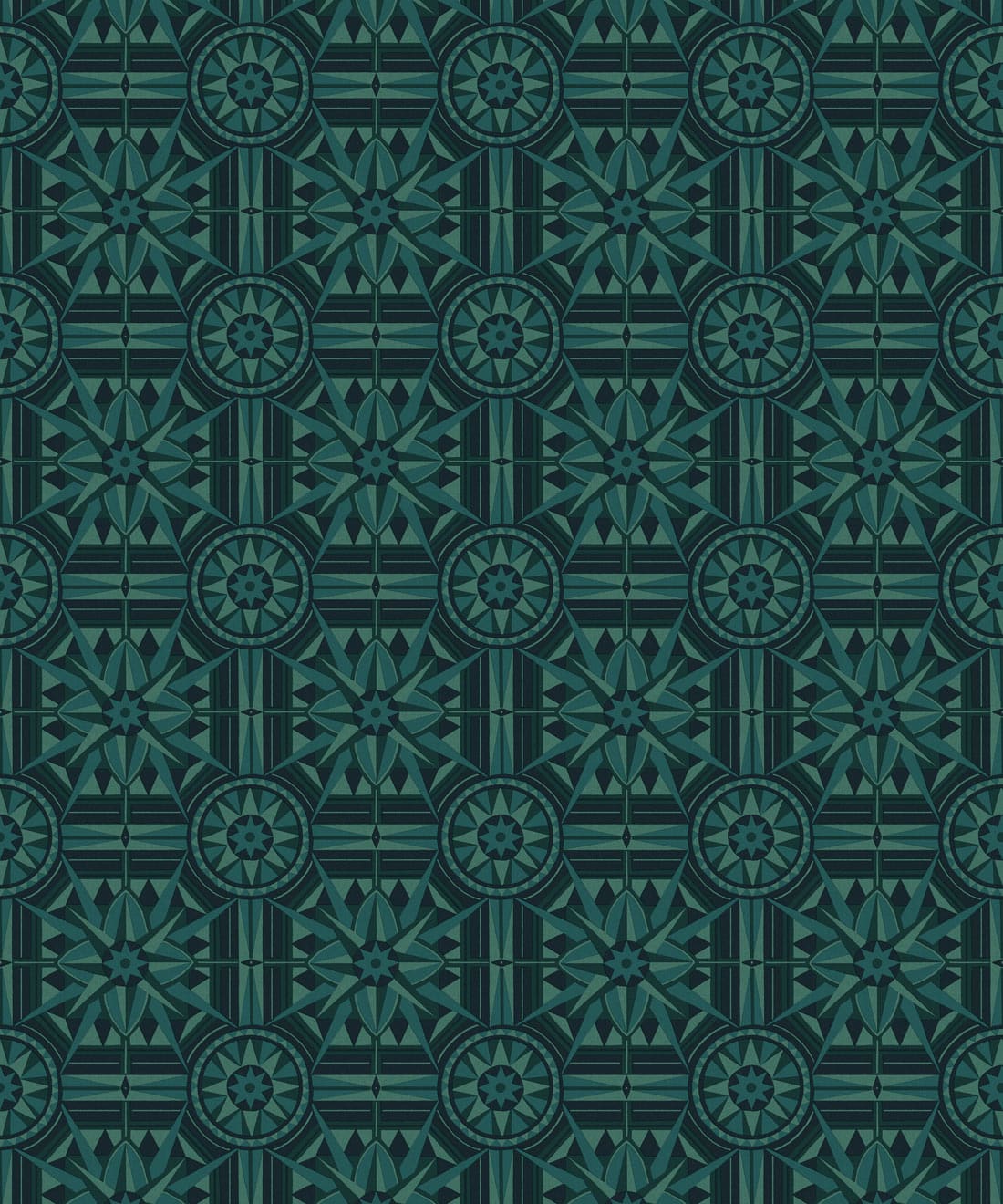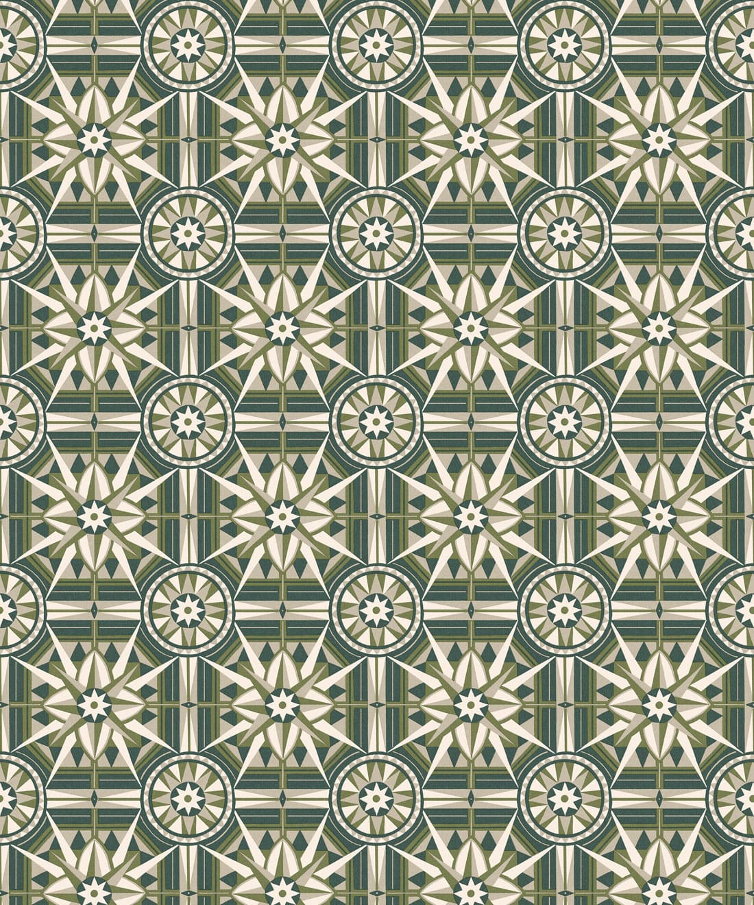 „Sundial“ ist eine geometrische Tapete, die von viktorianischen Bodenfliesen und den symmetrischen Formen traditioneller Garten-Sonnenuhren inspiriert ist. Markante Formen strahlen nach außen und bilden ein selbstbewusstes, sich wiederholendes Muster.
