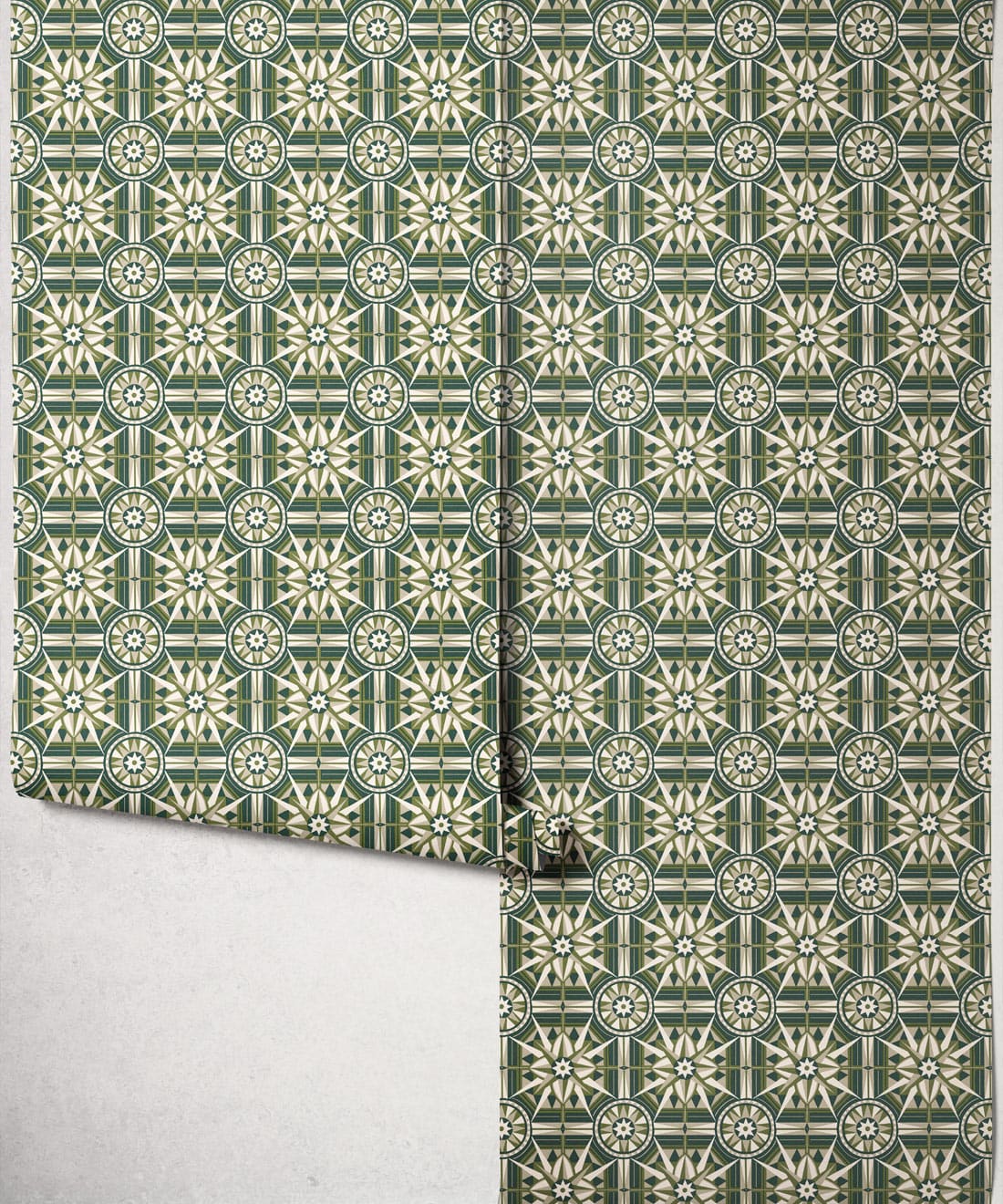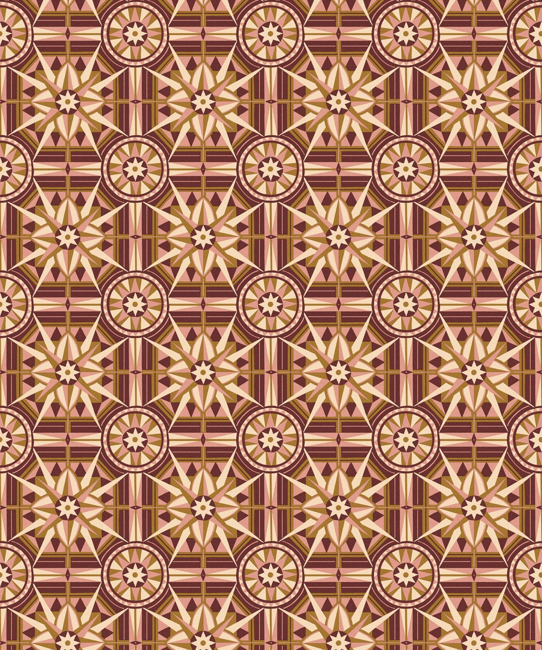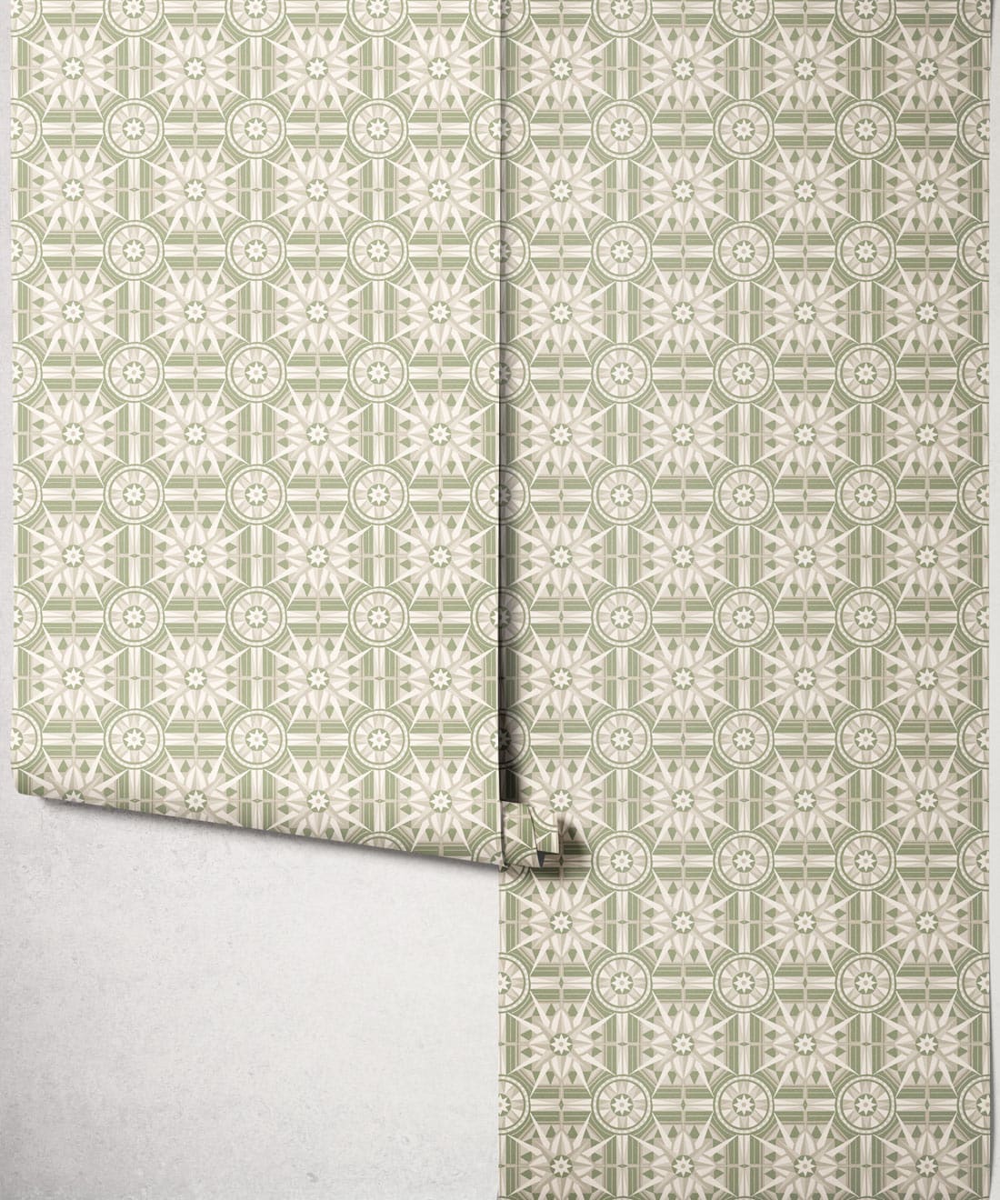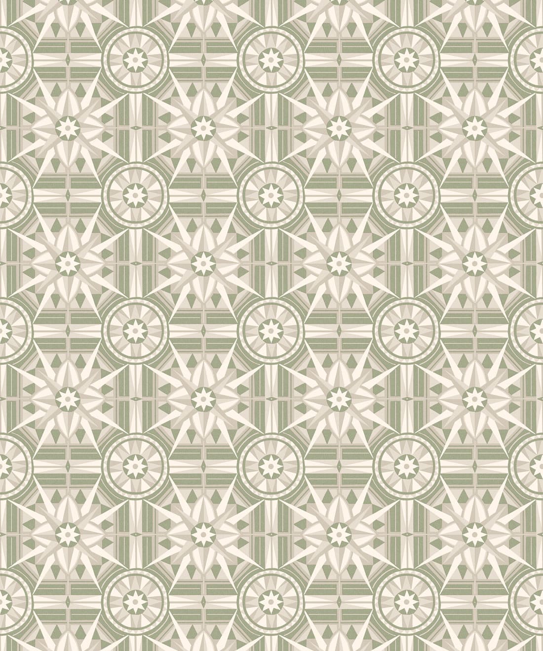 „Sundial“ ist eine geometrische Tapete, die von viktorianischen Bodenfliesen und den symmetrischen Formen traditioneller Garten-Sonnenuhren inspiriert ist. Markante Formen strahlen nach außen und bilden ein selbstbewusstes, sich wiederholendes Muster.