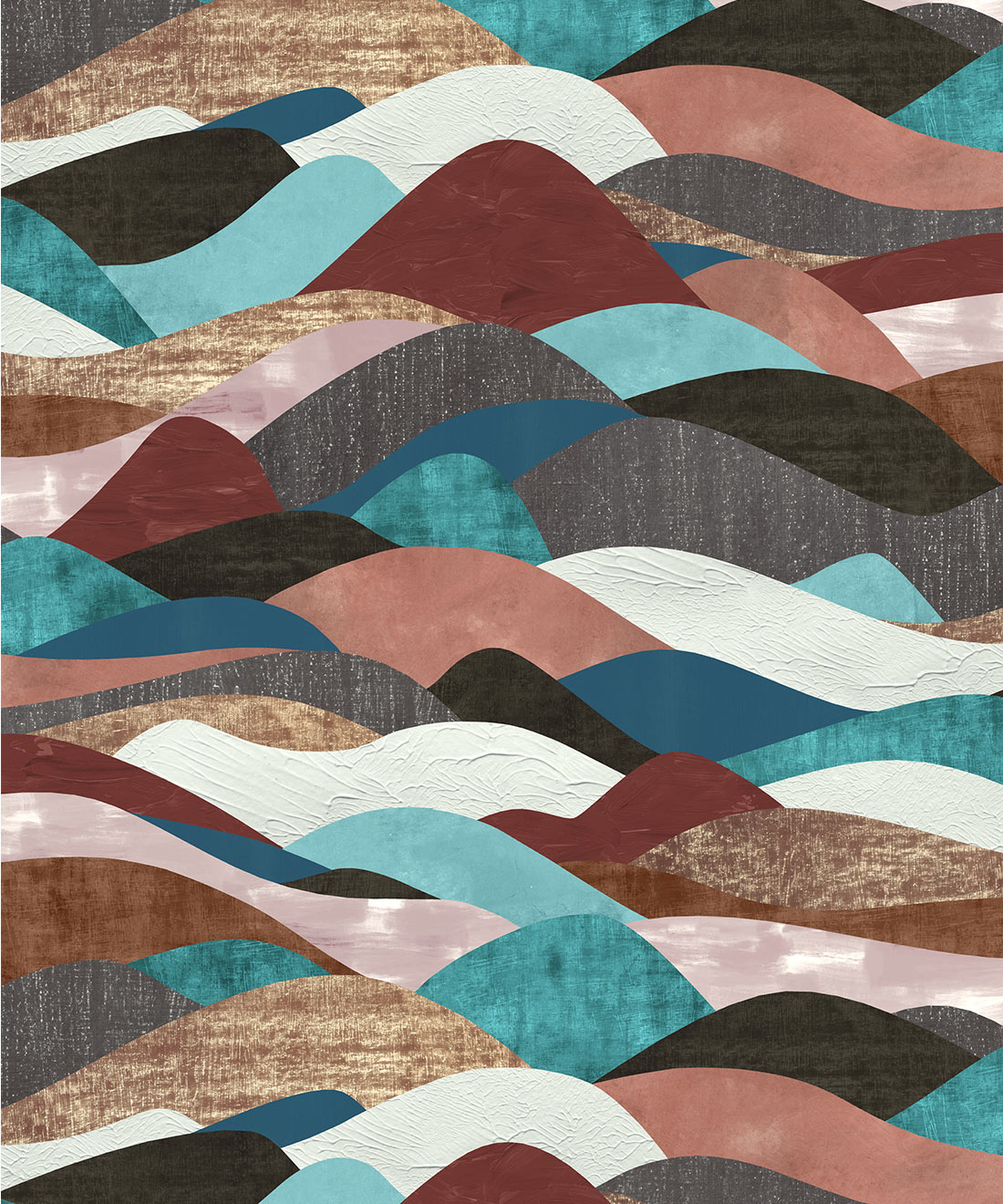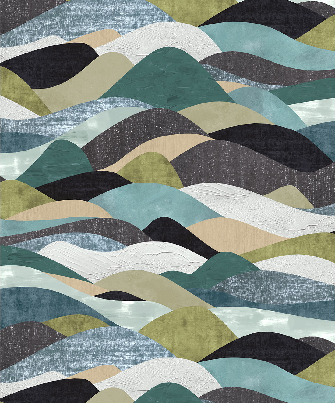 Dune es un viaje visual en capas a través de un terreno pintado, donde las formas suaves y onduladas se elevan y descienden como colinas desérticas o paisajes esculpidos por el viento. Cada forma se representa utilizando una variedad de técnicas de aplicación, desde pinceladas entrecruzadas hasta toques de pintura y tejidos denim, lo que confiere a cada «duna» una superficie y un carácter únicos.