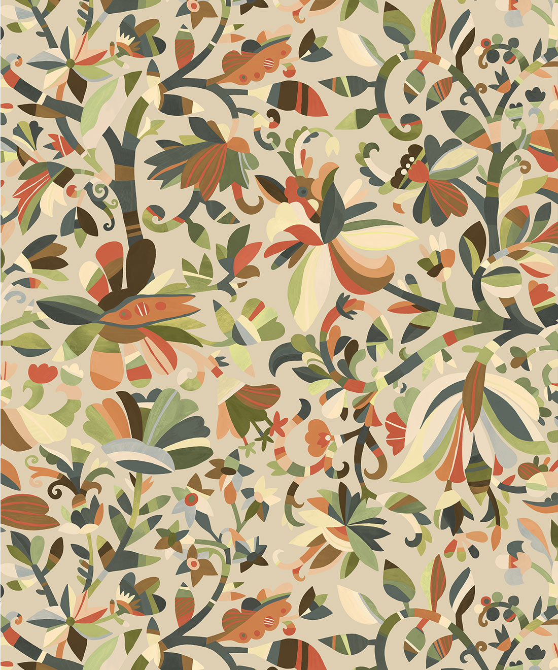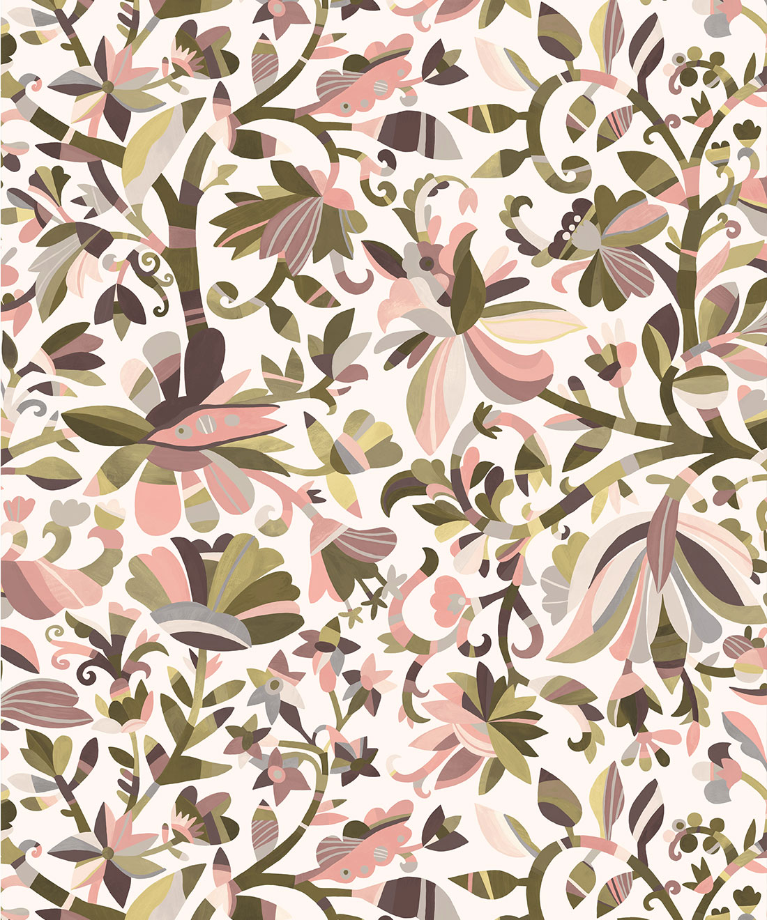Botanique est un motif floral intemporel qui s'adapte à merveille à son environnement : doux et romantique dans un space, riche et spectaculaire dans un autre. Des pétales délicats, des fleurs majestueuses et des tiges sinueuses s'entremêlent dans une composition fluide qui apporte à la fois grâce et énergie au mur.