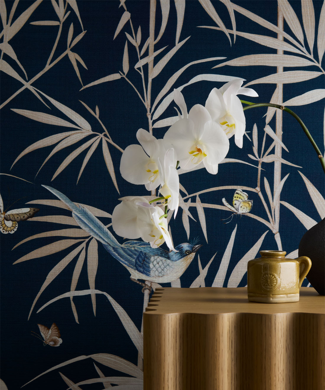 Gli steli e le foglie sinuosi della carta da parati Bamboo Grasscloth trasformeranno qualsiasi interno in un natural rifugio. Uccelli e farfalle svolazzano tra gli steli in questo design ispirato alla chinoiserie, catturando perfettamente la pace di un rifugio nascosto. grove Disponibile in quattro splendide varianti di colore, questo design si adatta a diversi stili e costituisce lo sfondo perfetto per gli interni che necessitano di un tocco di calore, profondità e consistenza.