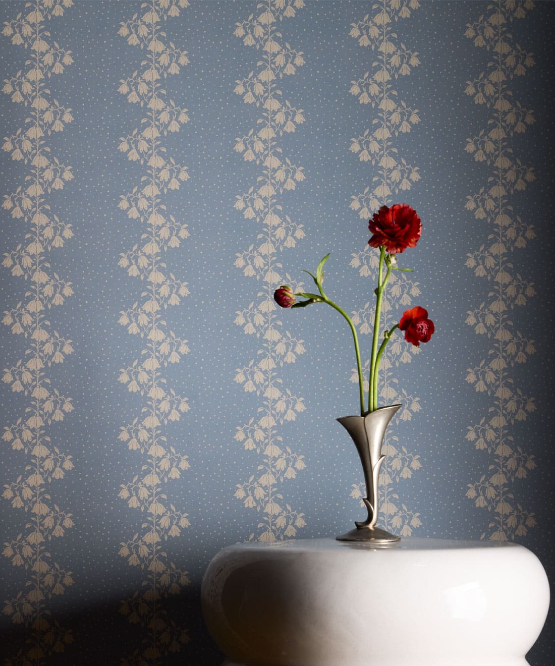 La carta da parati Pearl presenta piccoli fiori di bucaneve disegnati a mano dal fascino senza tempo. La sua subtle ripetizione crea un gentle effetto chevron, aggiungendo un movimento morbido a qualsiasi space.