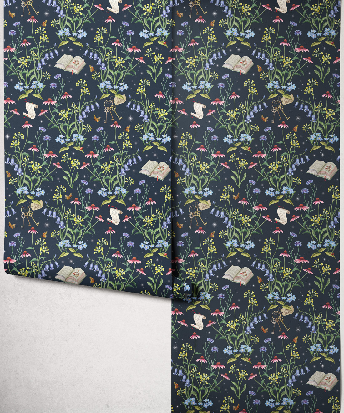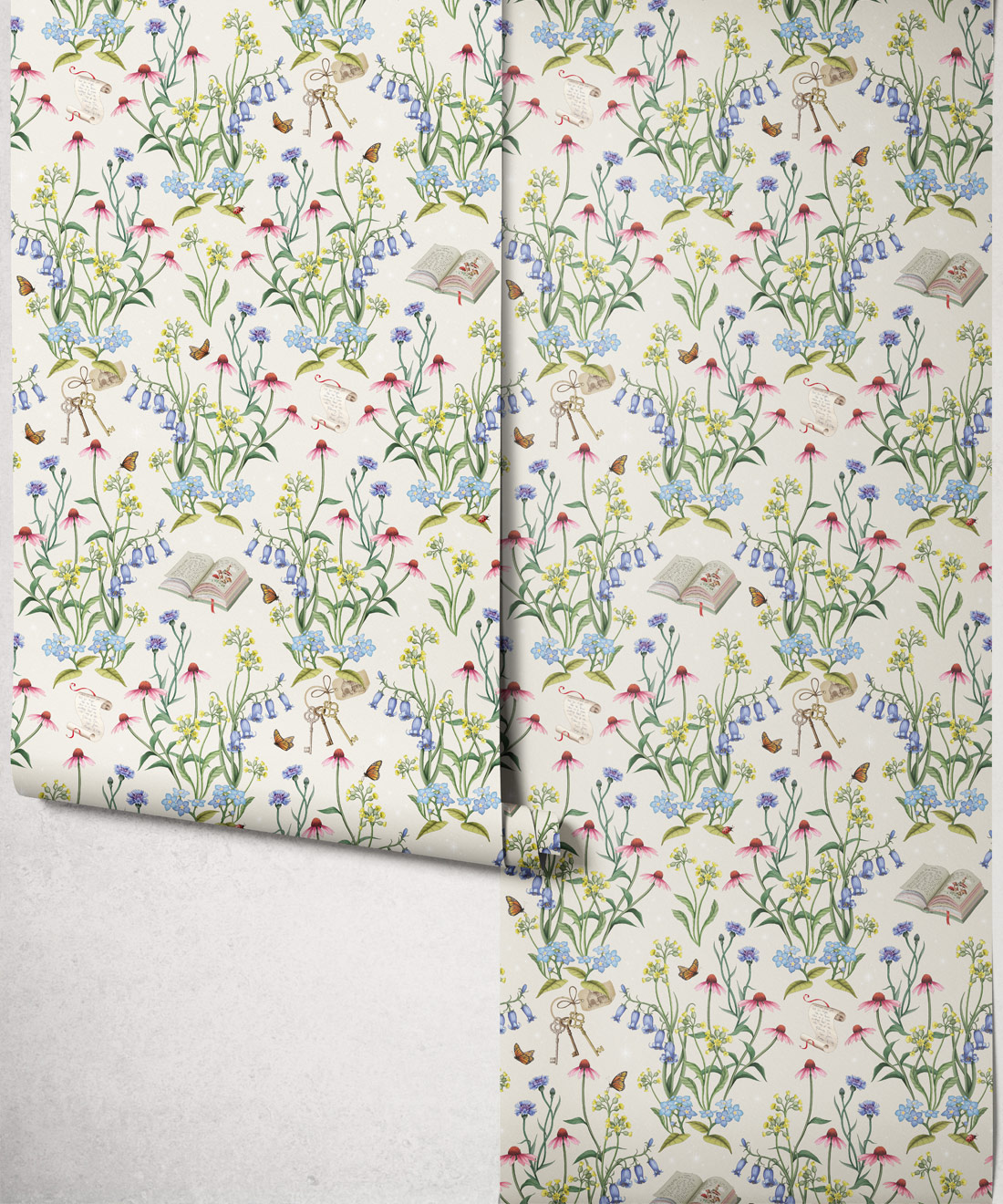 Caratterizzato da fiori selvatici fluttuanti, dettagli fiabeschi e subtle momenti subtle , questo disegno trasmette una sensazione di leggerezza e tranquillità, stimolando al contempo l'immaginazione. Illustrato nello signature di Fleur Harris, crea uno sfondo splendidamente equilibrato che si adatta perfettamente alle camerette dei bambini e alle stanze dei neonati.